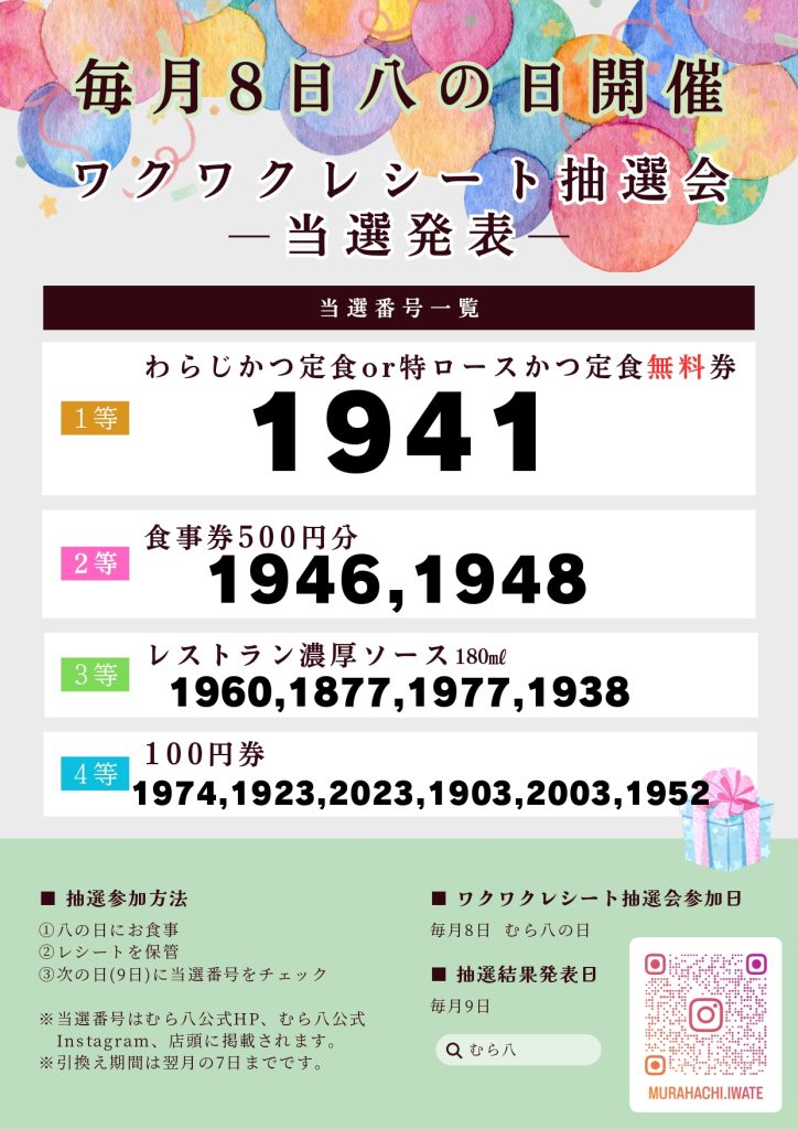 「むら八の日 ワクワクレシート抽選会」に