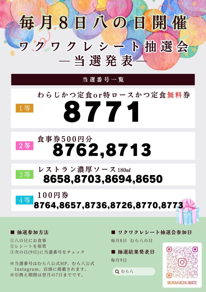 「むら八の日 ワクワクレシート抽選会」に