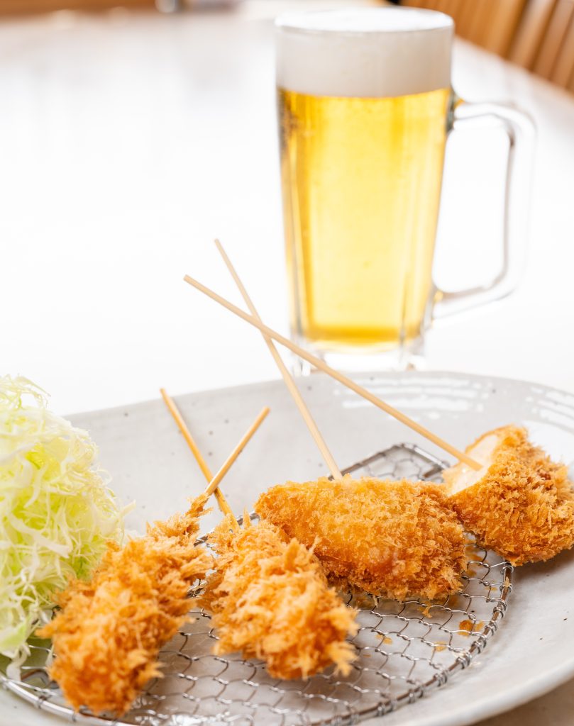 まずは一杯セット 商品詳細 生ビール(キリン一番搾り 中ジョッキ)・串かつセット 価格 1,000円(税込) メニュー一覧に戻る グランドメニュー 梅ヒレ巻きかつ定食 1日限定8食 1,738円(税込) ジャンボロースかつ定食(250g) 2,068円(税込) 昭和のかつ丼 1,628円(税込) メンチかつ定食 1,188円(税込) まずは一杯セット 1,000円(税込)
